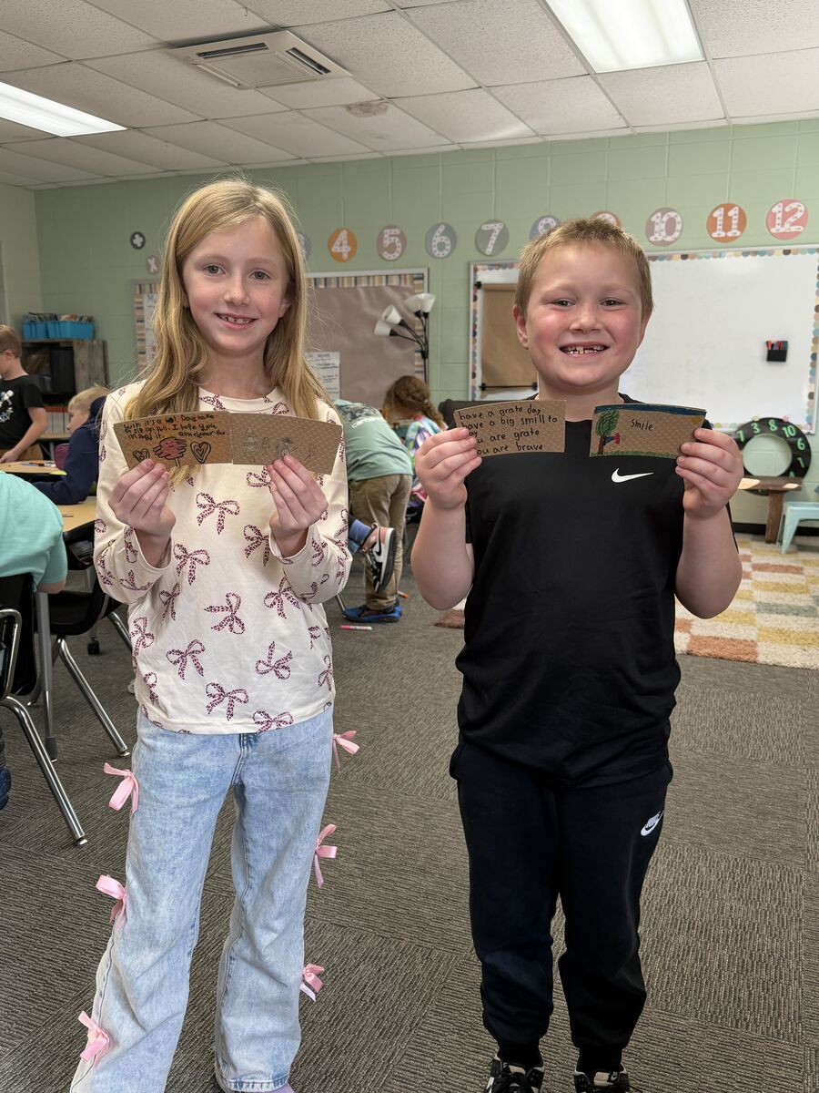 World Kindness Day is tomorrow, so to spread a little kindness, our third graders decorated coffee sleeves for CJs Coffee Bar. Head to CJs and grab a hot coffee and see some of our great art work.